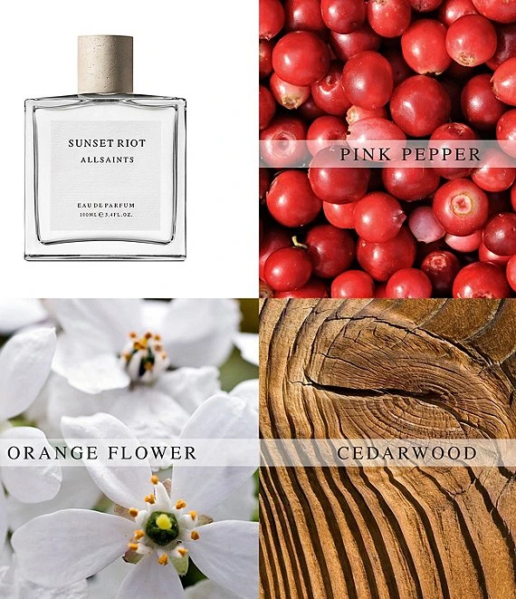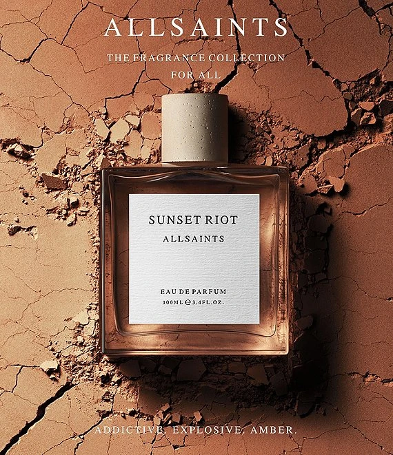 Addictive. Explosive. Amber. The setting of the sun is majestic, calming, and often. A riot exemplifies upheaval and defiance mixed with energy and hope. The juxtaposition of these two moments, one of peace and the other of disturbance are symbolic of imperfect balance. A spritz at pulse points before getting dressed becomes a sensual signature day or night. ALLSAINTS The Fragrance Collection For All.