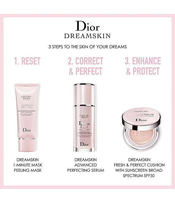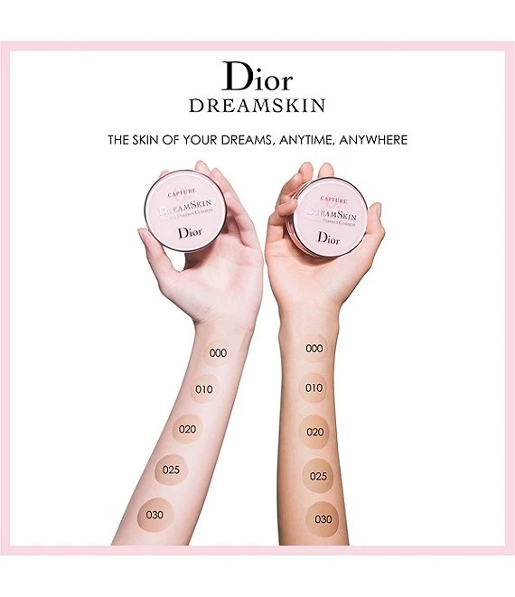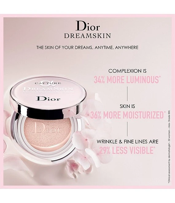 Dior has reinvented its iconic cushion compact: now in an updated formula that provides increased hydration. This complexion perfector features the correcting power of Dreamskin within a portable case to enhance and protect skin. Upon application, its luxurious texture perfectly fuses with the skin to unify in transparency and improve the appearance of redness, shine, and pores. Skin is left refreshed, luminous, and beautiful.