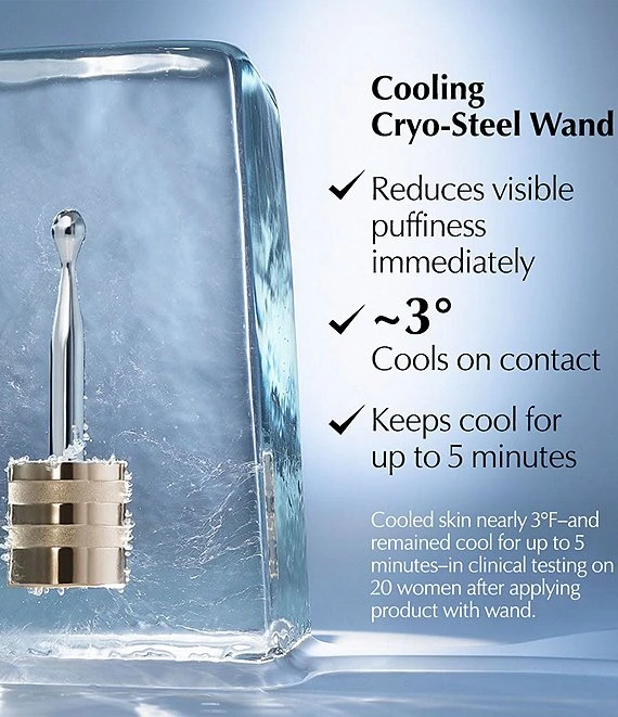 The custom-designed applicator, crafted from stainless steel, cools puffy eyes on contact. Its precision contour tip has a high-polish surface that massages and glides without tugging – vital for thin, fragile eye skin. Provides long-lasting cooling for up to 5 minutes.(3) Clinically tested: using the wand plus the Eye Matrix reduces the look of undereye puffiness instantly.