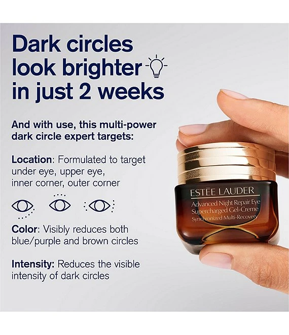 Starting tonight, supercharge your eyes for a brighter, more wide-awake eye look. Dark circles look brighter in just 2 weeks. Lines and other initial signs of eye aging look reduced.
