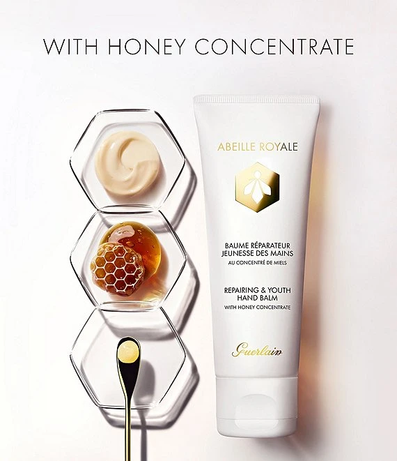 Designed to be fast-absorbing and applied to bare skin or layered on top of cleansed hands. This balm intensely nourishes the dry and fragile skin on your hands. Delicately scented with a light & fresh honey fragrance by the Guerlain’s Master Perfumer Thierry Wasser.