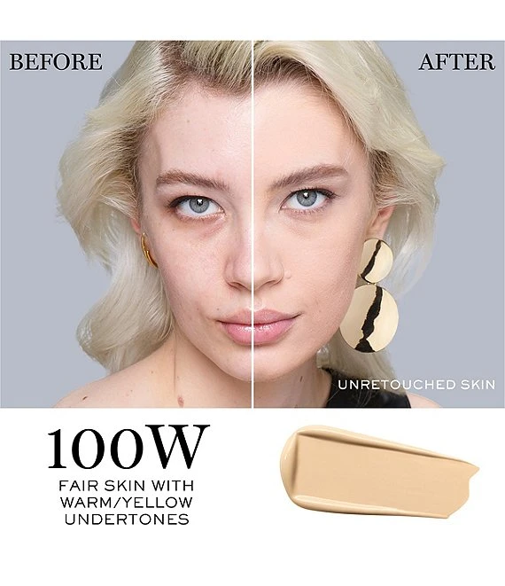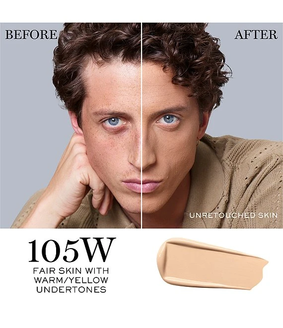 This full-coverage foundation seamlessly leaves your skin with a flawless natural-matte finish that is lightweight and breathable with the benefit of buildable full coverage that will stay all day without fading or transferring. Deep shades were enhanced by the pigment Ultra Marine Blue, resulting in pure, deep shades without a gray cast. For olive skin tones, the pigment Chromium Oxide Green was used to create shades that aren’t too yellow or orange. Teint Idole Ultra Wear Foundation is made for all skin tones and skin types, even sensitive skin.