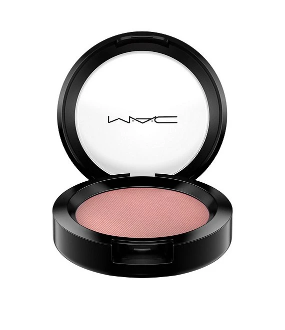 - Tap off excess powder and apply blush to skin using sweeping strokes and blend well.