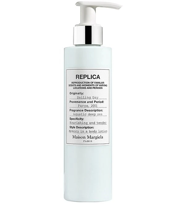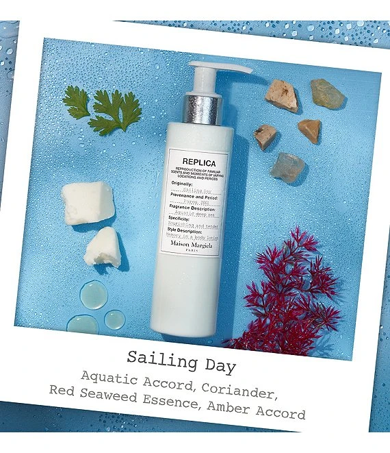 A moisturizing and tender body lotion to recreate the memory of a Sailing Day every day of the week. Delicately perfumed with REPLICA’s Sailing Day scent, this body lotion brings a soft and invigorating sensation while hydrating and nourishing your skin. This body lotion is nourishing and moisturizing thanks to a complex of hydrating agents, shea butter, apricot kennel oil & vegetal glycerin which absorbs quickly to leave your skin hydrated, silky smooth and radiant.