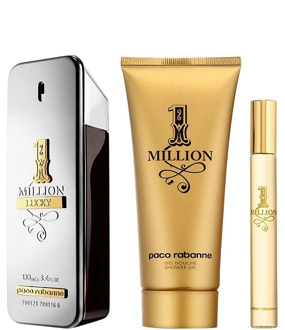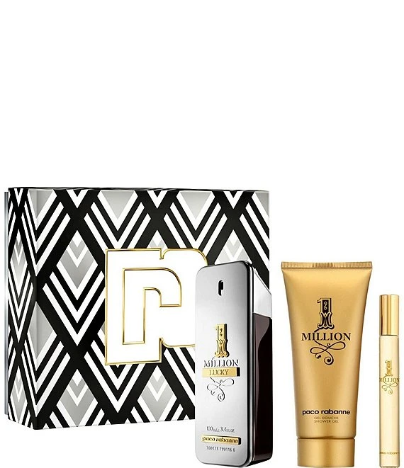 Celebrate Father’s Day with a Paco Rabanne gift set- the absolute gift of love! This 3-piece cologne set features the iconic 1 Million Lucky Eau de Toilette housed in a limited-edition gift box, with designs inspired by iconic Paco Rabanne prints. 1 Million Lucky is a fragrance that stimulates the senses with grapefruit and green plum. Warm hazelnut captivates and creates an instant addiction while cedarwood and patchouli exude lasting sensuality and excitement.